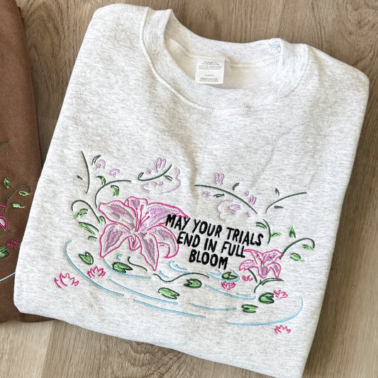 May Your Trials End In Full Bloom Embroidered Sweathsirt