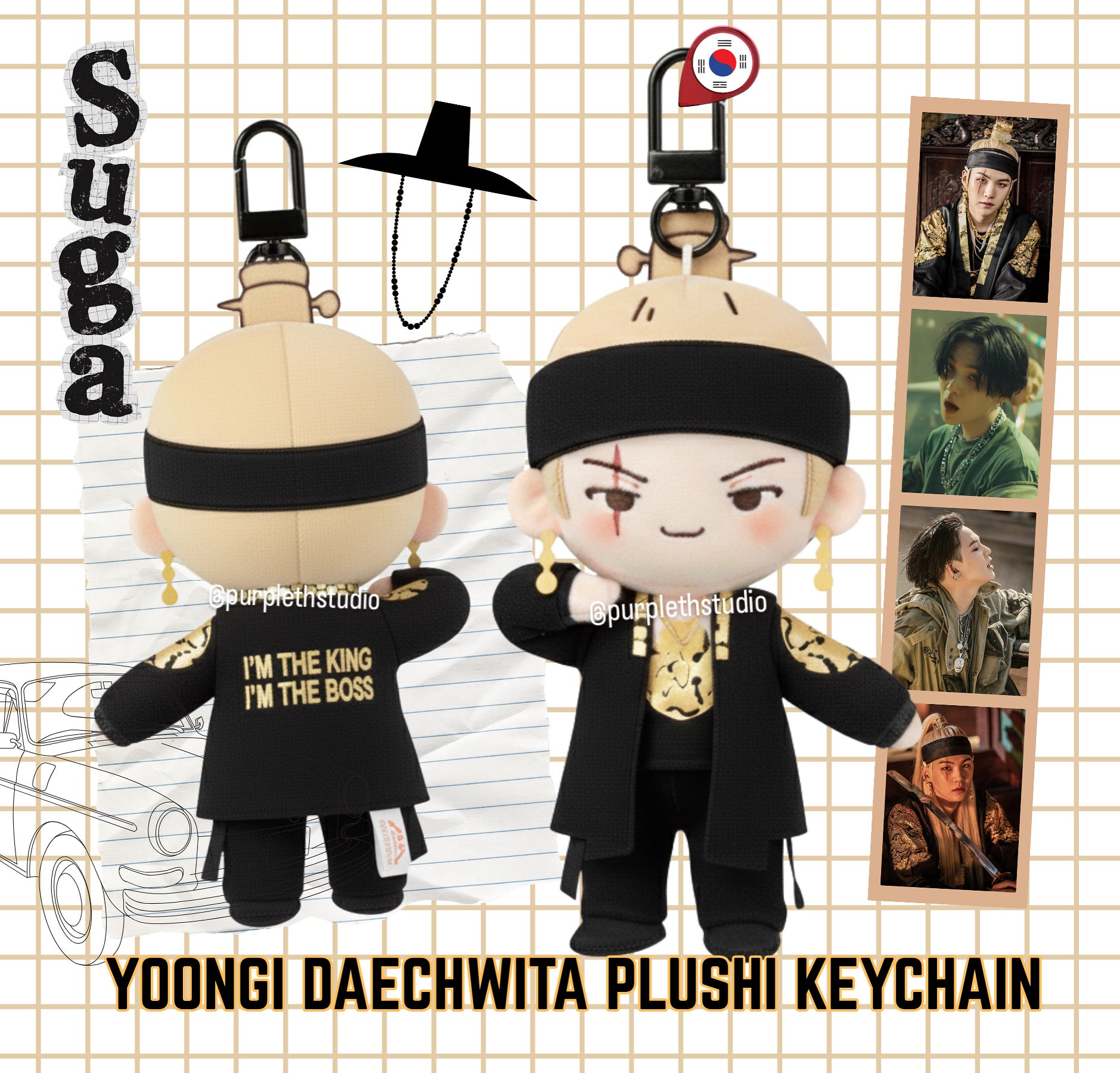 Bring home the royal energy of Daechwita with this 15cm Suga-inspired plushie keychain 👑